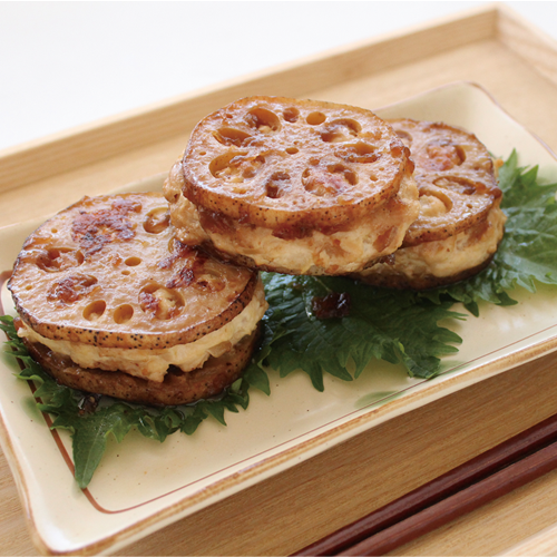 お弁当のおかずにもなる!はんぺんバーグのレンコンはさみ焼き